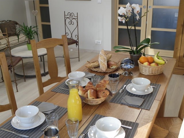 Two spacious bedrooms on the ground floor accessible to people with reduced mobility and two upstairs, decorated with taste and refinement. Each room with shower and toilet, and internet. Shared kitchenette, cot and high chair bed available. Enjoy a hearty breakfast before exploring the area.